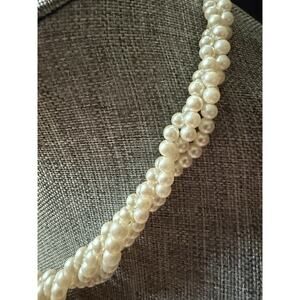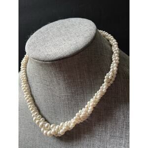 Vintage Napier Gold Tone Graduated Twisted Three Strand Faux Pearl Necklace