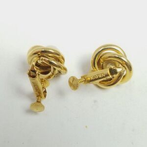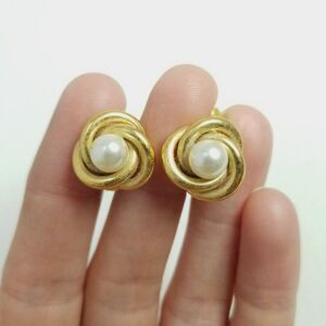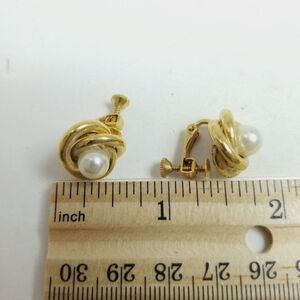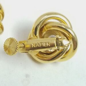 Vintage Napier Gold Tone Knot Shape Clip On Earrings, Faux Pearl Center, Estate