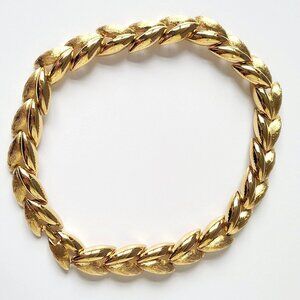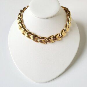 Vintage Napier Gold Tone Textured Chunky Leaf Link Heavy Collar Necklace 17 in