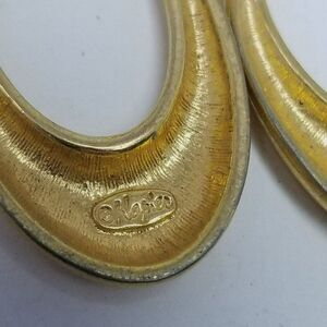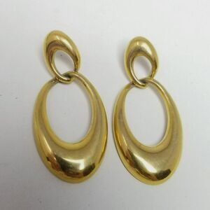 Vintage Napier Gold Tone Door Knocker Dangle Hoop Earrings, Signed Estate