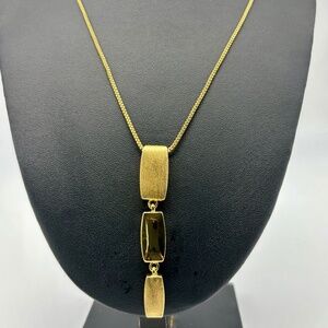 Vintage Napier Gold-Tone Chain w/Textured Elongated Elemental Pendant, Metal Tag