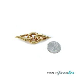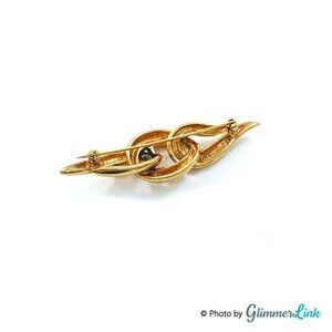Vintage NAPIER modernist gold tone bar brooch featuring intertwined swirls that resemble a bow.