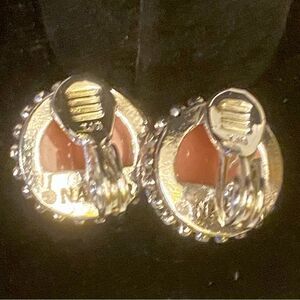 Business, elegant, wedding, bride, anniversary, clip on earrings, clip on peach earrings, career wear, office, vintage, costume jewelry, Napier small earrings, bridal, statement earrings, conversation piece, OOTD, fashion blogger, old money, quite luxury, ornate earrings