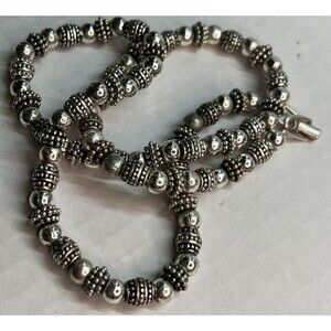 Vintage Napier Necklace Beaded Silver Tone Round Smooth & Bali Signed Heavy