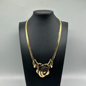 Vintage Napier Necklace Gold Tone Scroll Swirl Pendant Bold Statement 18 Inch