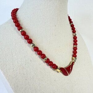 Vintage Napier Necklace Red Enamel Gold Tone Classic Chic 80s Signed