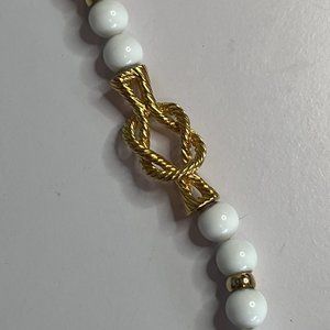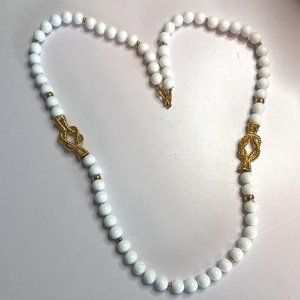 Vintage Napier Pat. Pend. White Ball Beaded Pretzel Twist Accent Necklace