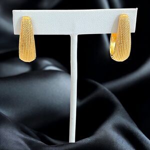 These vintage Napier pierced earrings are gold toned and feature a textured hoop design.