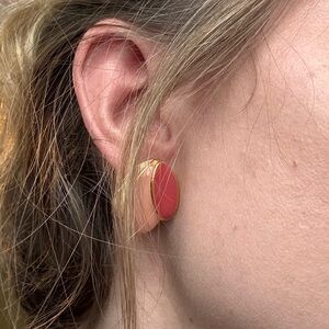 Bring a touch of retro elegance to your look with these vintage Napier pink enamel earrings. Featuring layered ovals in shades of blush, peach, and cream outlined in gleaming gold tone, these earrings capture the timeless sophistication of 1980s fashion jewelry.