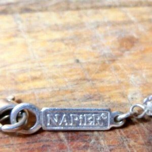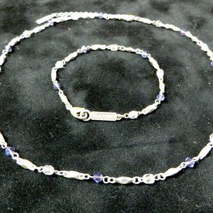 Vintage Napier Purple and Clear Rhinestone Necklace and Bracelet Set Silver Tone