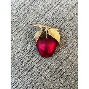Vintage Napier Red Apple Jelly Belly Brooch With Gold Leaves