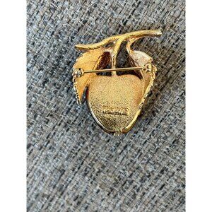 The Napier red apple jelly belly brooch beautifully captures a bygone era of finely crafted adornments. Crafted with gold leaves and a striking red apple design, this piece harks back to a time when jewelry was as much a statement of individuality as it was a treasured keepsake.