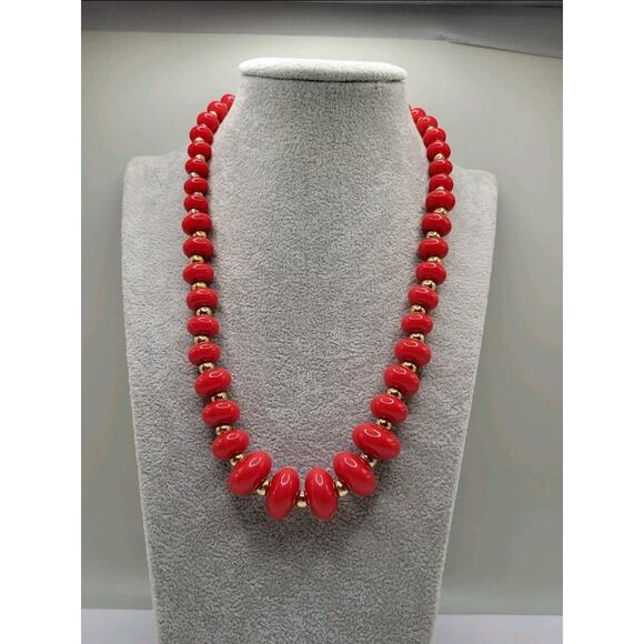 Beautiful vintage Napier bead necklace featuring bold red donut style beads with gold tone spacer beads.