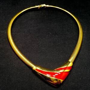 *Description: This is a great vintage Napier red enamel choker necklace with snake chain from the 1980s. The gold plated choker necklace has red enamel accents on the built in pendant necklace. The snake chain has a fold over clasp which fits securely. The pendant is stamped NAPIER on the back. This would be a great addition to your vintage jewelry collection or make a great vintage gift!