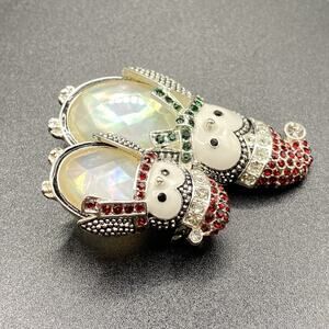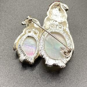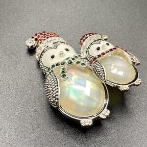 Vintage Napier Rhinestone Penguins Brooch Opalescent Cabochon Christmas Winter