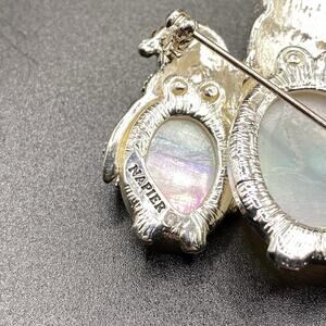 This Vintage Napier Rhinestone Penguins Brooch is a beautiful and festive accessory perfect for the Christmas season. The opalescent cabochon stones add a touch of elegance to the colorful rhinestones, creating a unique and eye-catching design. Signed by the renowned brand Napier, this retro-inspired brooch features a penguin shape, making it a charming and whimsical addition to any outfit. Perfect for women who appreciate vintage jewelry with a touch of beauty and artistry.