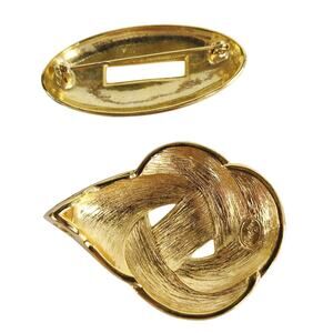 This vintage estate jewelry lot includes a Napier signed pink enamel on goldtone 2.25" teardrop pendant and an unsigned dark green enamel on goldtone 2" oval brooch pin. The pendant has a loop at the top of the teardrop. I estimate they are from the 1970s-80s era.