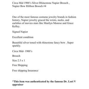 Vintage Napier Silver Tone Rhinestone Sparkle Brooch Bow Christmas Ribbon Pin