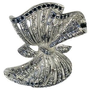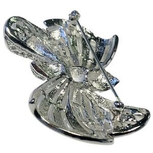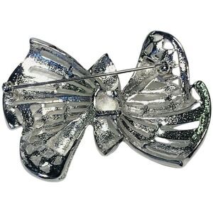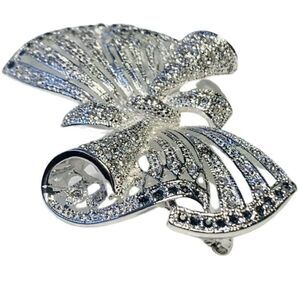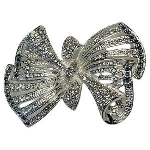 Beautiful silver toned with rhinestone fancy bow . Super sparkly.
