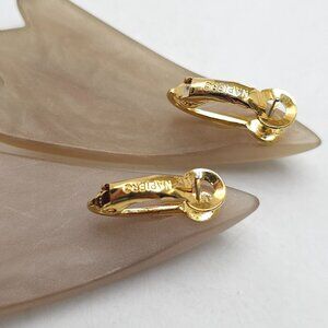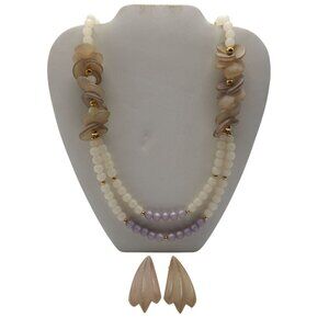 Earrings show minor wear on gold-tone clips. Necklace clasp and beads in excellent condition.
