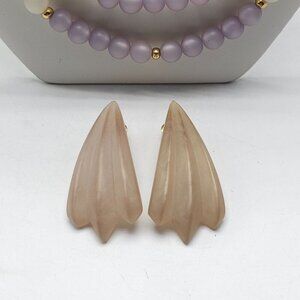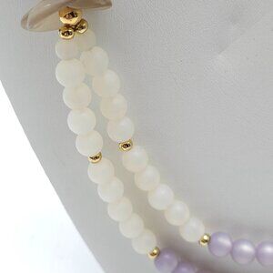 Vintage Napier Strand Beige Purple Frosted Beaded Necklace Clip Earrings Set