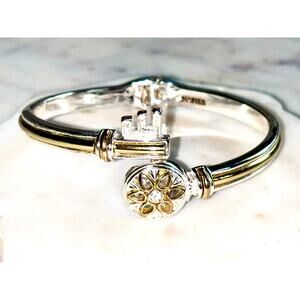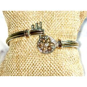This is a gorgeous vintage Napier two-tone hinged crossover bangle bracelet.
