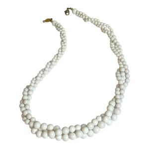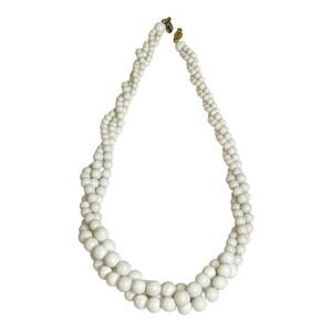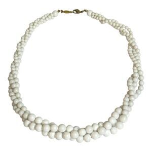 Vintage Napier White Beaded Triple Strand Twisted Necklace 18 inch