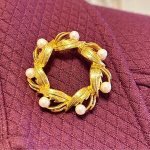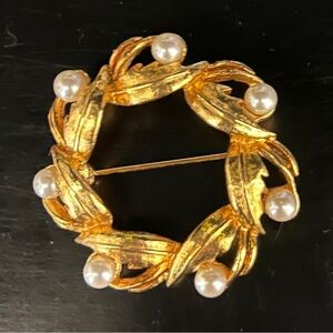 vintage VTG retro wreath leaves classic 1990s brooch pin pearl