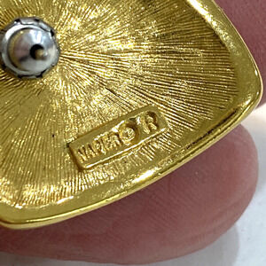 Vintage Napier pierced earrings - gold tone metal in a mod shell shape with creamy white enamel finish. Clearly hallmarked - stunning 1980's Boss Lady look. In excellent vintage condition - no damage or flaws - so cute!