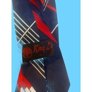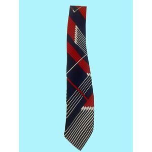 Vintage Narrow Thin Bold Red Navy Geometric Silk Tie King Lou