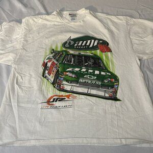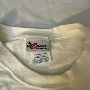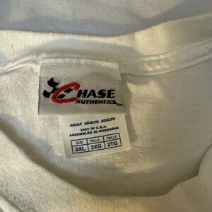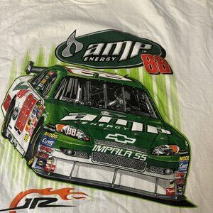 This vintage NASCAR shirt features Dale Earnhardt Jr's signature AMP branding and a bold all-over print. Made by Chase Authentic, this officially licensed product is perfect for any NASCAR fan. The white shirt comes in size 2XL and is designed for men, with the Hendrick Motorsports team logo prominently displayed.