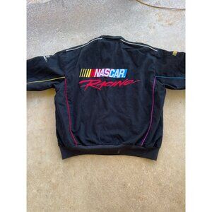 This Nascar Racing jacket from Checkered Flag Sports combines style and comfort. It's crafted from a cotton and nylon blend, providing warmth and durability. Bold logos and color accents make a statement. Suitable for motorsport enthusiasts or casual wear.