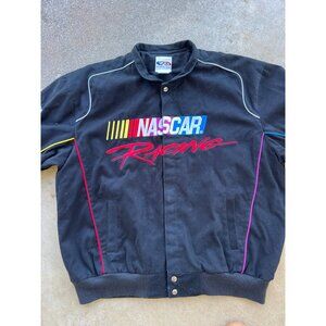 Vintage Nascar Racing Checkered Flag Sports Jacket 2XL Black D4