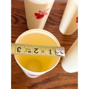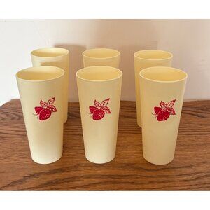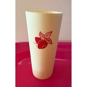 This set of six vintage MCM tumblers blends classic design with functionality. Each features a charming red strawberry print on beige plastic, offering lightweight durability.