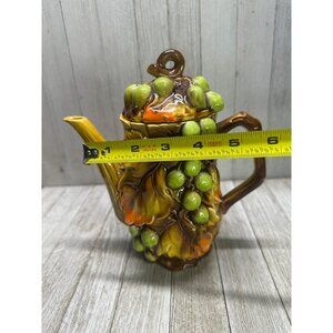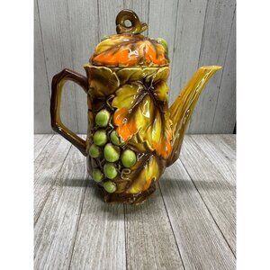 Vintage Nasco Swirling Leaves Grapes Tea Pot & Creamer Sugar Set MCM Japan