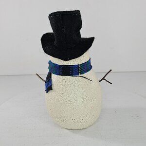 Vintage Natalie Silitch Folk Art Snowman Figurine Black Hat Plaid Scarf