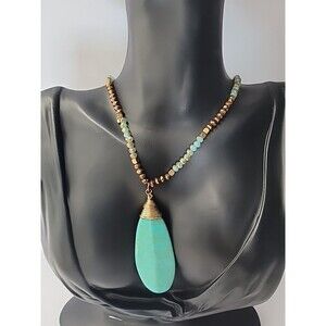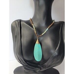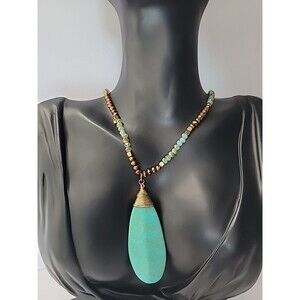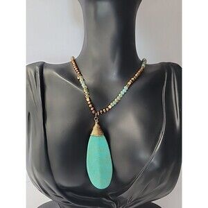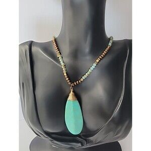 Vintage Natasha Necklace Pendant Green Gold Tone Beaded Double Strand Chain