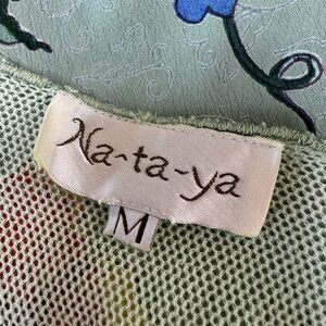 Vintage Nataya Hummingbird Green Floral Mesh Mini Dress size Medium