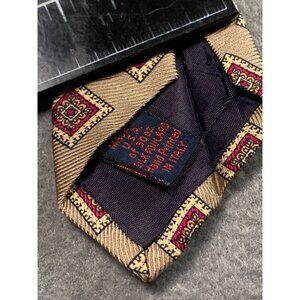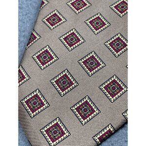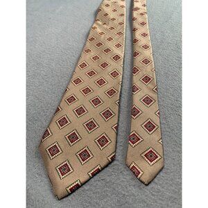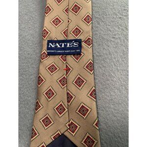 This Vintage Nates Men's Silk Tie features a tasteful brown and red geometric pattern. Made in the USA, it measures 60 inches long and 3.5 inches wide, offering a classic and stylish accessory.