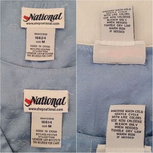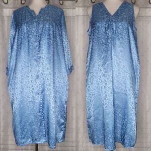 Vintage National Blue Floral Satin Burnout Peignoir Robe & Nightgown Set Medium