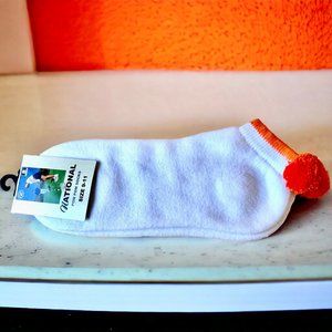 Vintage National Pom Pom Socks Anklets Womens 9 to 11 White & Orange NEW
