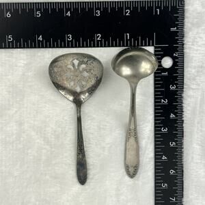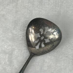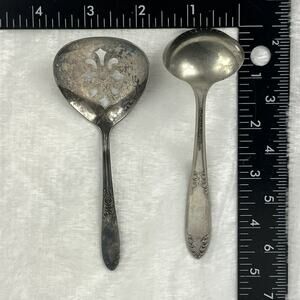 Keywords: hostess ladle slotted ornate floral vintage tarnish acanthus scroll silverplated serveware kitchen classic retro midcentury cottagecore elegant