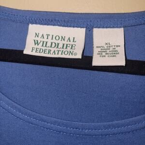 The Vintage National Wildlife Blue Bird Colonial Blue Shift Dress in XL size is a charming and versatile piece perfect for a casual occasion. Made from 100% cotton jersey fabric, this long dress features a solid blue color with embroidered accents, a round neckline, and short sleeves. With its vintage charm and XL pockets, this dress is ideal for traveling or relaxing in style during the summer, fall, or spring seasons. The shift style and side slit add a touch of elegance to the cottagecore and grandma-inspired theme of the design.