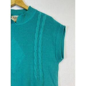Vintage Native American 80s/90s Teal Cable Knit Sweater Vest Top Made In The USA