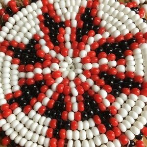 Vintage Native American Beaded Medallion Necklace Southwest Style Seed Leather