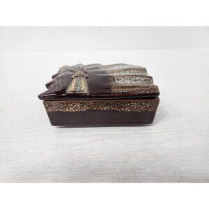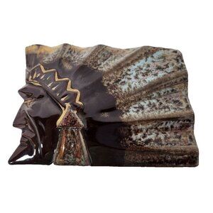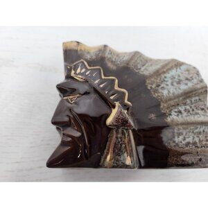 Vintage Native American Chief Head Design Lid Trinket Jewelry Box Porcelain Rare