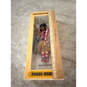 he image shows a vintage "Indian Tribes Of The U.S.A." doll, specifically an "Iroquois Indians" doll, in its original box.