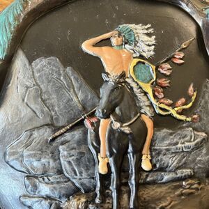 Vintage Native American Folk Art Hand Painted Provincial Mold Ceramic Decanter