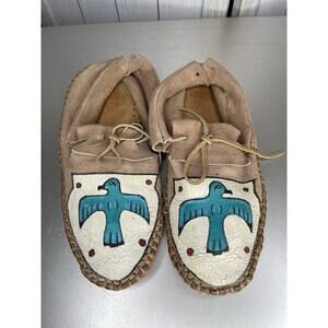 Vintage Native American Hand Painted Thunderbird Leather Moccasins 8.5/9