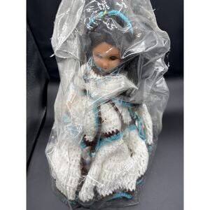 Vintage Native American Indian Princess Doll Crocheted Dress Beaded 15"